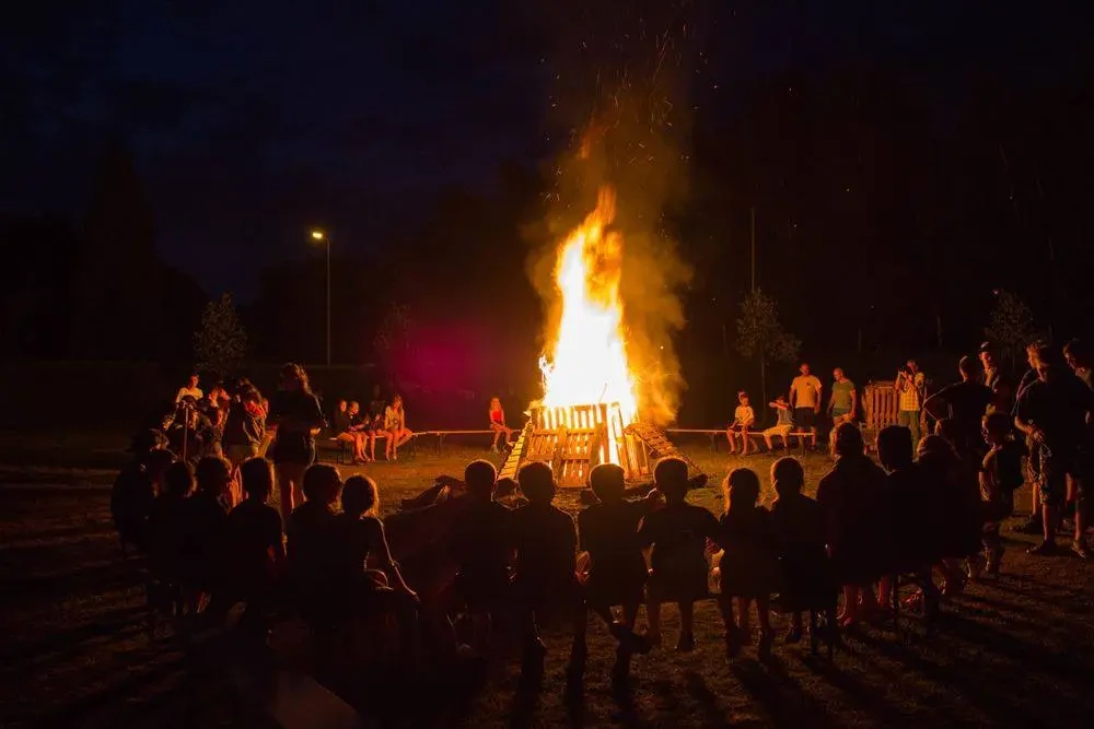 De kampvuurplaats ligt op het hoogste punt van het domein en biedt voldoende ruimte rondom voor tenten en activiteiten.